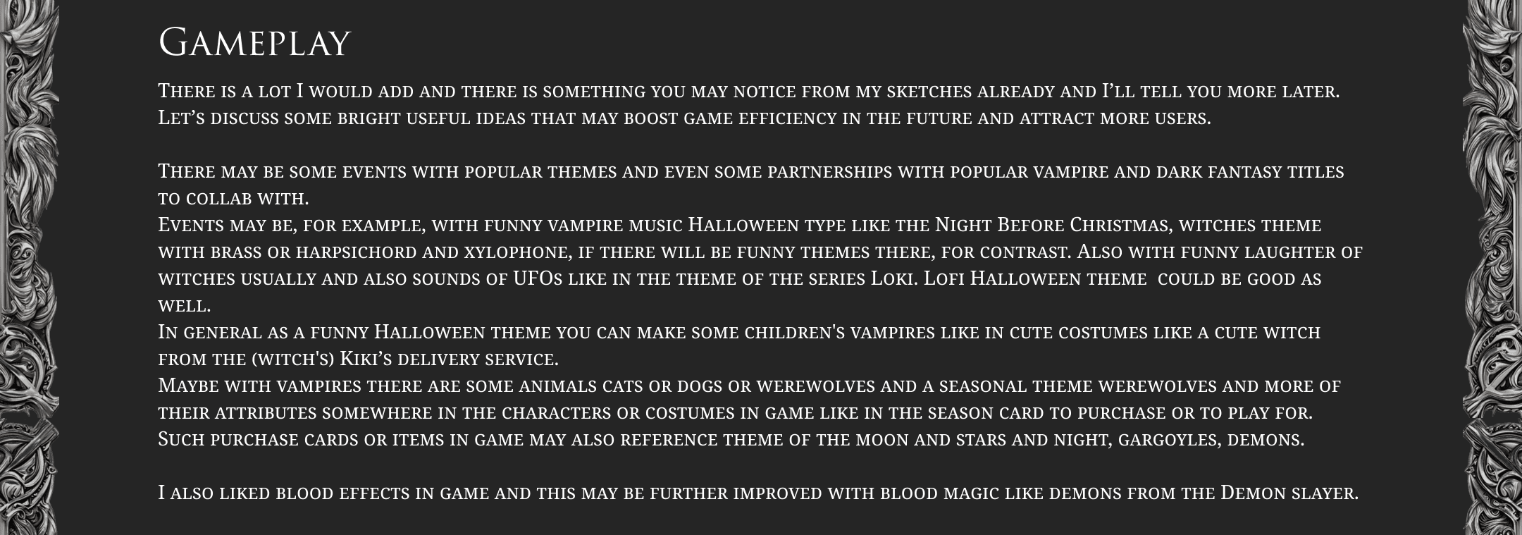 Vampire mobile game design with mechanics improvement.