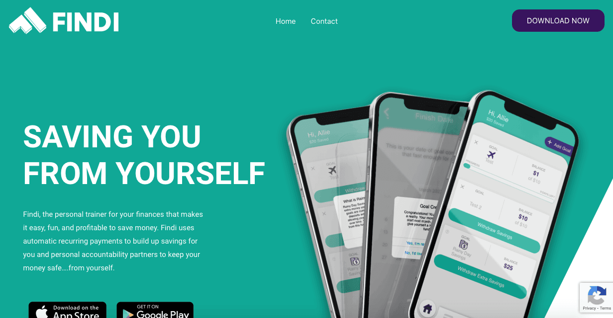 Findi money financial mobile app for savings with funds goalkeeper feature.