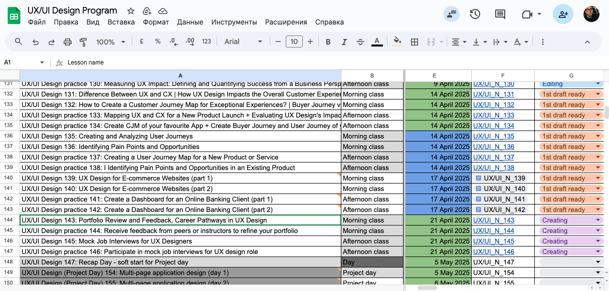 I'm helping BIT with design program as a UX/UI Design Education Program Lead. Here is their website and screen of education materials database.